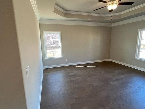 A stunning 4-bedroom, 2-bath home offering 2,002 sq ft of luxurious living space. The open-concept great room flows into the breakfast area and a chef's kitchen, featuring stainless steel ENERGY STAR® appliances, granite countertops, and a stylish tile backsplash. The primary suite boasts a walk-in closet and a spa-like en-suite bath with double sinks, a garden tub, and a separate fiberglass shower. Enjoy 5" hardwood flooring in main areas, plush carpet in bedrooms, and energy-efficient Low-E windows. This home also includes a covered patio and a two-car garage, all located in a sought-after community. Open House daily, all showings welcomed!