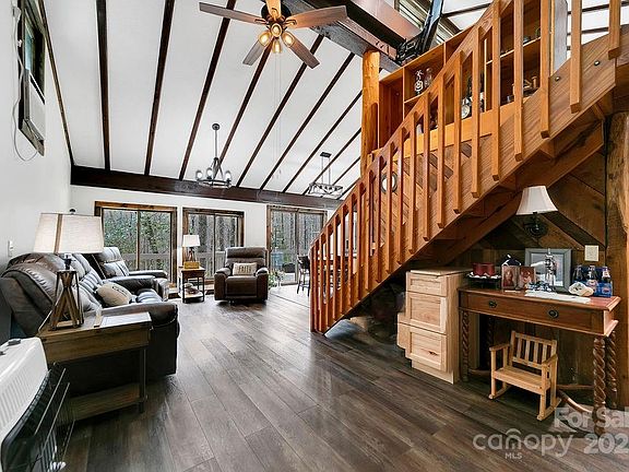 This is the peaceful mountain retreat that you have been looking for. Nestled back in a 7.48 acre lot, it has the utmost privacy. The lot has a gentle topography with a babbling stream that meanders through it. It provides plenty of room for gardening and all of your outdoor activities. The cabin has been recently remodeled. It boasts a cozy open floor plan. The gorgeous kitchen is open to the dining area and living room. it has 2 bedrooms, 1 full bath and a laundry room on the main level. Upstairs there is a spacious loft which would be great for an office space. The sprawling front deck is great for entertaining or just enjoying you morning coffee while you take in the natural surroundings and abundant wildlife. The 2-car detached garage will be great for all of your projects. This home also comes with access to Line Runner Lake, where you will enjoy paddle sports and fishing. It is just minutes away from all the conveniences of Rosman and Brevard. This home is a must see!
