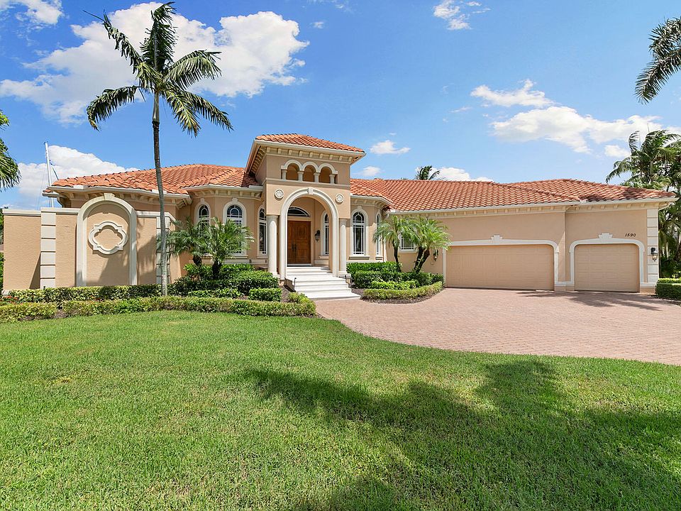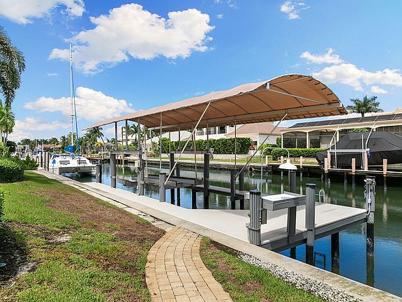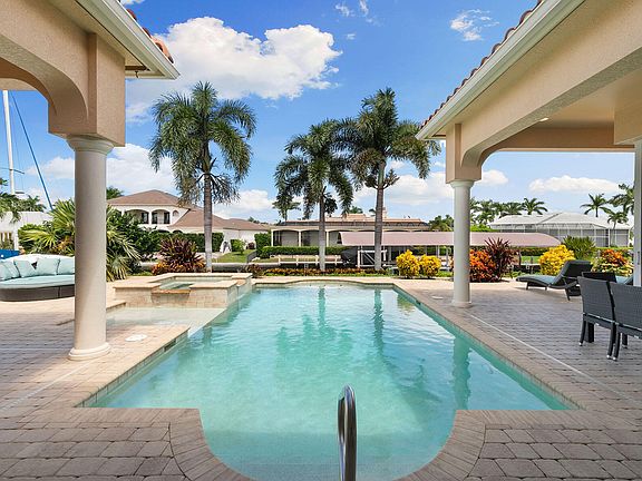 Located in the prestigious Estates of Marco Island, this custom Divco residence blends timeless elegance with peace of mind features that make it as solid an investment as it is a lifestyle. You can change a house, but you can't change location—and this one delivers with 13 feet of elevation, whole house generator, direct Gulf access, and a half-acre setting along a wide waterway. A composite dock with new boat cover, fishing station, and 16,000-pound lift provides your prized vessel the home it deserves, with quick passage to the Ten Thousand Islands and beyond.