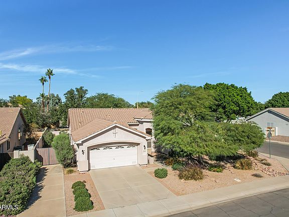 Quality built Fulton Home is on an over 8,000 SF corner lot, backing to gorgeous greenbelt area.**Beautiful landscaping in front and back yards**Extra driveway leads to RV gate with paved parking behind gate**Huge covered patio** Extended oversized garage with built-in cabinets and water softener**.Interior is open and cheerful with white kitchen cabinets and light neutral walls. ** Primary bath has beautiful, new spa shower** Perfect proximity to downtown Gilbert and to downtown Chandler for top notch shopping, dining, nightlife and farmer's markets.