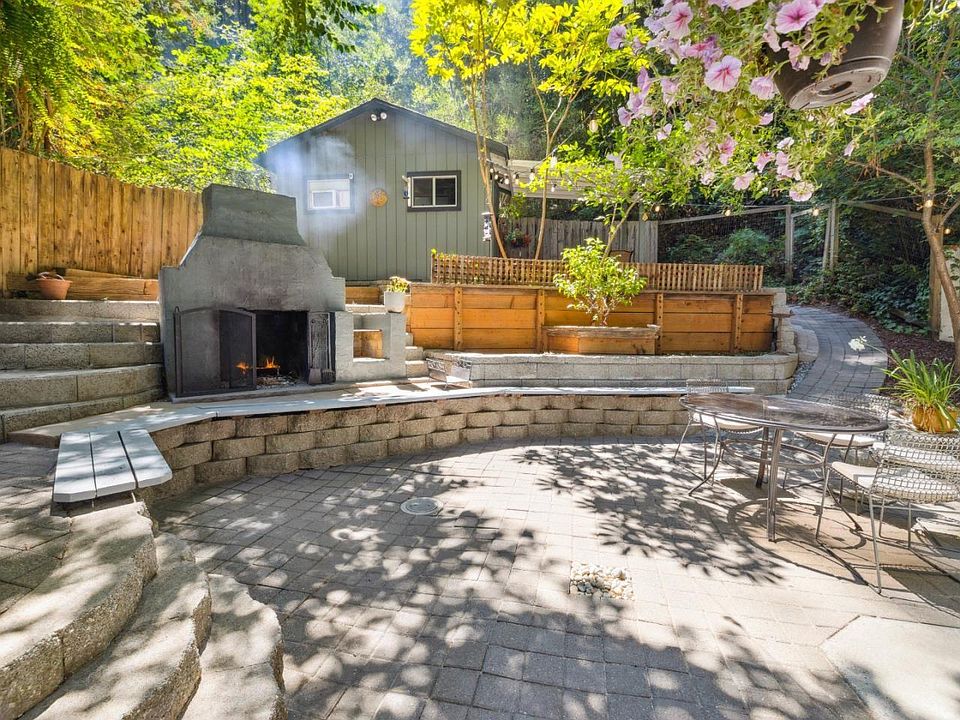 Tucked amongst the redwood trees in Scotts Valley, this modern single-level, 3-bedroom, 2-bath home is dotted with stunning natural light peeking through the trees. The living room features skylights, a vaulted ceiling, and an indoor fireplace, creating a warm and inviting atmosphere for gatherings and enjoying a cozy night. The kitchen opens onto the deck, perfect for alfresco dining in the yard on a warm summer evening. The primary bedroom boasts an ensuite, a closet, and a cozy reading nook- creating a private oasis. The other two bedrooms have built-in wardrobes and can easily be transformed into a work-from-home office or study. A dedicated laundry room adds convenience. The backyard is ideal for gatherings, with an outdoor fireplace, shed, and awning to offer shade. Conveniently located near Scotts Valley town, schools, Target, shopping, dining, bus lines, the library, and hiking at Henry Cowell State Park, this home offers tranquility and accessibility. Easy commute via Hwy 17 into Silicon Valley, or follow Hwy 1 to explore the coast's abundant beaches.