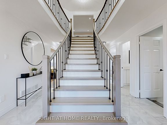 Welcome to this stunning home 4+2 bedrooms & 5 bathrooms- with just over 4000 sqft of combined living space in desirable Brock Ridge- walk to schools, park in the backyard and public transit at your doorstep. Close to Pickering Town Centre and places of worship, trails & green-space. Grand entrance with luxury staircase. Updated all new porcelain and luxury laminate floors on main and second level. Custom kitchen with quartz countertop, backsplash and s/s appliances. Entertain/ relax in the xl living&family rms. Dining rm is xl with built in bar/coffee nook/server with quartz countertop. Relax in the spacious executive primary bedroom with sitting area, his & hers walk-in closets and spa like en-suite. Second bedroom has its own private en-suite. Third bedroom has a semi-en-suite so there could be 3 primary bedrooms- great for large extended families or rental potential allowing for privacy for everyone. The basement is finished with 2 bedrooms, bathroom, recreational room and kitchenette -easy to add separate entrance from side yard. Private treed backyard with deck and gazebo to relax and enjoy summer days. Stamped concrete driveway with 3 parking spaces.