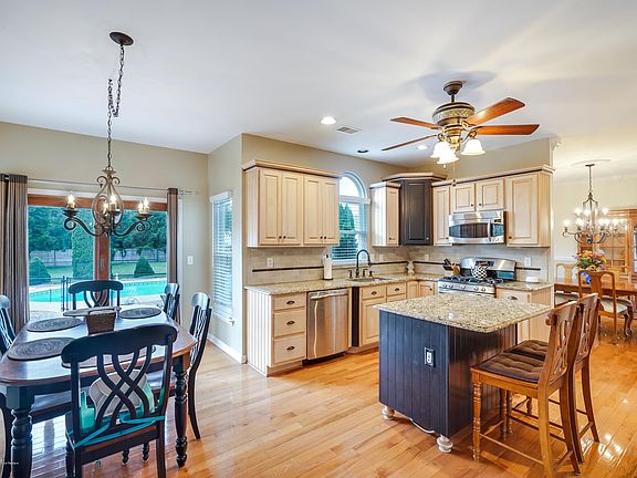 - RoomKitchenFeatures: Center Island, Eat-In, Granite/Stone Counter, Sliding Door, Bnook/Dining Area, Floor - Wood