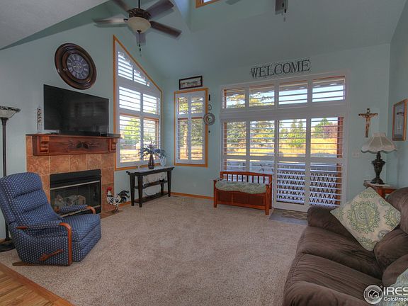 Nicely maintained Ranch Meadow Condo with great views of Longs Peak. Open floor plan includes wood floors, tiled floors, gas fireplace, and breakfast bar in the kitchen. Main floor living features the master suite, updated kitchen, great room, laundry, 1/2 bath and garage. Upstairs there are 2 bedrooms, bath, and a large loft. Plantation shutters added for energy efficiency and wonderful look. Back patio has plenty of privacy from your neighbors and features a retractable awning.