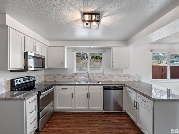 NW Reno, close to UNR, inviting home .21 ac lot with updated kitchen w/stainless steel appliances, refaced cabinetry & granite countertops, bathrooms have new tubs & subway tile, fresh Interior & exterior paint, LVP flooring, new lights & door hardware. Primary suite has walk in closet & large balcony. This home has SOLAR included, newer furnace & AC. & dual pane windows. Family room on main level could be 4th bedroom. Massive rear yard is nicely terraced with raised beds, & new Trex deck for summer BBQ's, Home has lots a natural light. Family Room downstairs offers lots of choices for use. Could be 4th bedroom, TV room, or game room. Loads of closet space; primary has a walk in closet as well as 2nd wall closet.