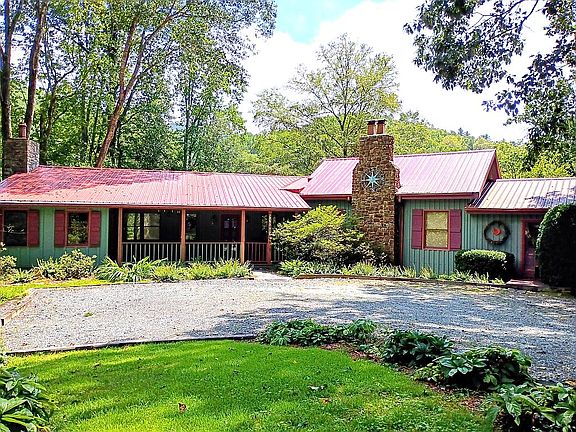 CHARM, CHARACTER, AND ARTISTICALLY-CREATED SPACES! This is the perfect Shulls Mill cottage for creative and interesting people! The story is that the East portion of this home was the 100-year-old Shulls Mill Store (currently artist's studio) that was moved back from the road & made into a home. Then in 1992 a celebrated designer added onto to it, more than doubling its size. In 2006 the present owners, an artist and a writer, rearranged the floor plan, adding kitchen, bathroom and storage spaces. A large sunroom - off the lower floor master bedroom - takes maximum advantage of the rock-cliff-above-a-stream setting and the wonderful southern light. The result is deliciously livable space! The large living room has vaulted ceilings with decorated beams. The stunning open kitchen has simple natural cherry cabinets and a light-filled dining banquette. The older part of the house features a family room (currently studio) with a fireplace, 2 ensuite bedrooms and a utility kitchen on the main level. Huge, rambling decks span the back of the house. The incredible master suite is downstairs with its own sunroom, fireplace, huge closets and luxurious bath. Plus another guest bedroom and bath. SIMPLY STUNNING!!! The metal roof was added in 2022. The exterior was painted in 2024. Every system has been replaced by the owners with a new septic system currently being installed. A reservoir is being added for ample well water for a larger family. Basic furnishings including: beds, living room furniture, sunroom furniture, dishes and flatware are included in the price. All systems GO for an immediate and seamless move.