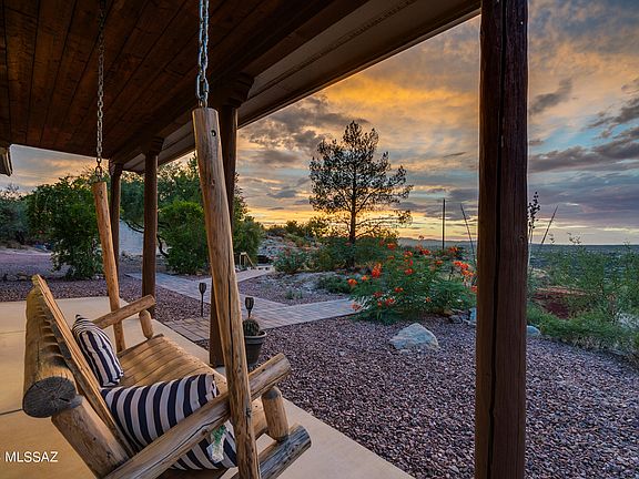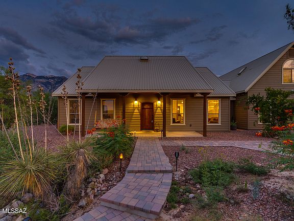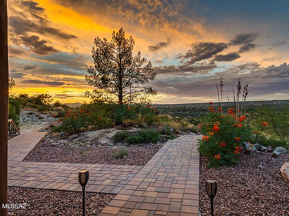 Experience the perfect blend of privacy, breathtaking views, and exceptional craftsmanship in this stunning 4BD/3BA home on a sprawling 2.14-acre lot. Enjoy sweeping panoramic mountain vistas from every angle, inside and out. Built to last with a durable steel frame, fire-resistant concrete siding, and a metal roof, this home offers peace of mind and timeless beauty. Step into the open kitchen, complete with solid wood cabinets, stainless steel appliances, granite countertops, and a large island breakfast bar that flows into a cozy living area. The inviting fireplace is perfect for relaxing evenings.2 bedrooms plus a spacious primary bedroom is located on the main floor and features a beautifully updated bathroom with a luxurious soaking tub, rain glass windows for added privacy, a walk-in shower, and elegant tilework. The home showcases concrete flooring downstairs and engineered oak wood flooring on the staircase and upper loft. Step outside to enjoy an entertainer's dream with an outdoor kitchen, spa, and bonfire area, all with stunning views looking towards Miraval Resort and town lights at night. Adventure is at your doorstep, with some of the best mountain biking and hiking trails just outside your door. The hot tub sold as-is. Come take a look for yourself to see this beautiful home..