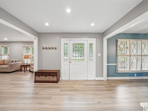 Welcome to a rare 1.5-story home in prestigious Clarkson Valley! Nestled on a quiet cul-de-sac, this beautifully updated residence offers a spacious, level fenced backyard backing to peaceful common ground for ultimate privacy. Savor your morning coffee on the maintenance-free deck, immersed in nature’s serenity. The heart of the home is the updated chef’s dream kitchen with white cabinetry, quartz countertops, a glass subway tile backsplash, black stainless appliances, and a large center island. Flowing seamlessly into the family room, you'll love the stunning stone woodburning fireplace and sliding doors that lead to a sprawling composite deck—perfect for entertaining. The main-floor primary suite is a true retreat with a large walk-in closet and remodeled spa-like bath featuring double sink vanity, large walk in shower, free standing tub and tile floors. Upstairs boasts three spacious bedrooms and a full bath, while the walk-out lower level offers a large rec room, family room, sleeping area, and full bath—ideal for guests or multigenerational living. With that include main-floor laundry, luxury vinyl plank flooring, plantation shutters, and located in award-winning Rockwood School district, and easy access to shopping and highways, this home is truly special. A one-year American Home Shield warranty is included!