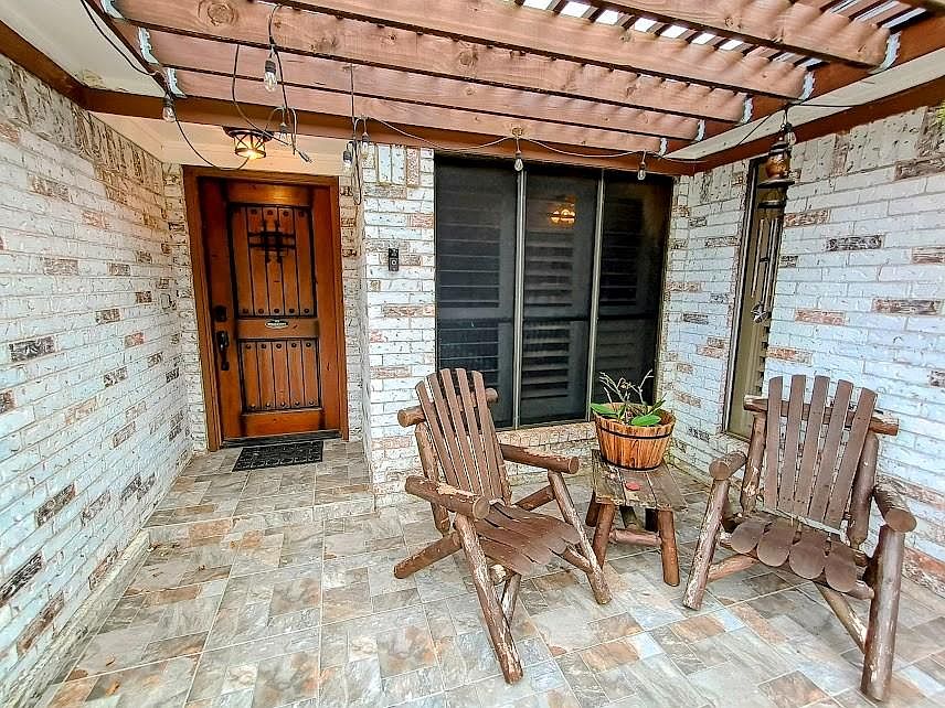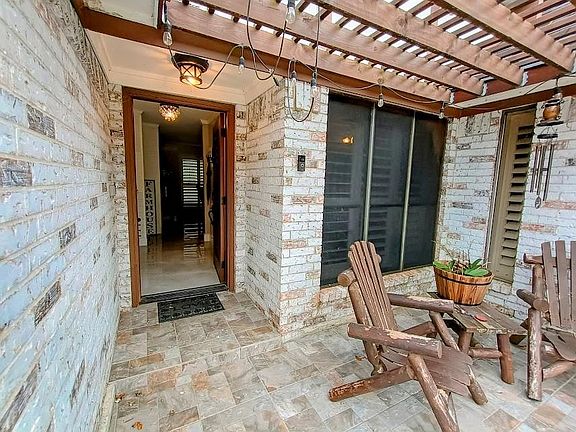 FULLY REMODELED SINCE 2020 in the Newport subdivision in Crosby, this 3 bedroom 2 full bath with 1 large half bath and attached 2 car garage is situated on a large pie shaped cul de sac lot. Front patio has pergola sitting area. Out the back door is a huge covered porch with mounted TV and ceiling fan. Living, dining, kitchen, study, half bath, laundry, primary bedroom with en suite bath downstairs. Upstairs are 2 large bedrooms WITH HUGE CLOSETS, full bath and a "harry potter" room. Remodel includes: replaced roof, rotten wood, paint, window screens. Inside new paint walls and doors, new doorknobs and hinges. Kitchen and primary bath gutted, custom wood cabinets and new appliances walk in shower, soaker tub, vanity. All 3 baths have new toilets. Water heater and A/C replaced. New flooring door trim and baseboards, plantation shutters added. Bead board ceiling and ship lap added downstairs. Replaced front, back and garage doors. Breaker box was replaced less than 15 years ago.
