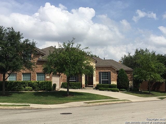 Rare find in Sonoma Ranch! Beautifully maintained huge 0.4 acre corner lot with over 40 trees, beautiful landscaping & massive shaded back yard oasis. Heated in-ground pool and spa with generous decking. Storage shed & plenty of space for gardening. Large master and guest suite down. Study, formal dining & large island kitchen with silestone counters & 42" cabinets. Rare floor-plan on very wide level lot. Near USAA, UTSA, Med Cntr & shopping.