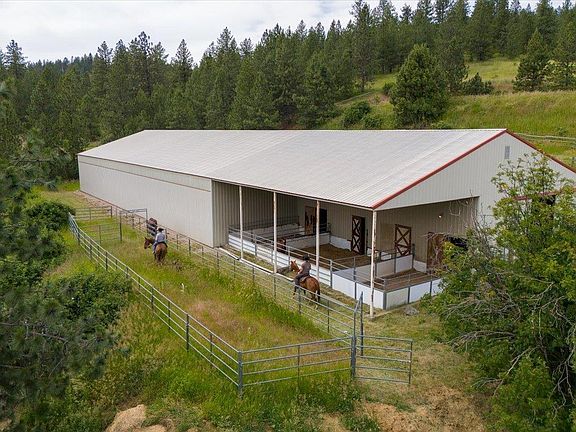 Discover this idyllic haven for those seeking an equestrian lifestyle combined with seclusion and limitless recreational opportunities on this expansive 80-acre estate! The custom built 4-bedroom, 3-bathroom home features a wrap-around deck with breathtaking mountain views and full Southern exposure. Designed for horse enthusiasts, the property includes a 10,800 Sq Ft barn with indoor arena, 4 stalls with covered paddocks, tack room, storage room and hay loft. Additional amenities include an 1,800 Sq Ft shop, outdoor arena, and a picturesque pond with a dock, multiple grazing paddocks with shelter, lush pastures and serene timberland with unlimited trails for riding, hiking and year round recreational activities. The property also features year-round springs, marketable timber with a mixed forest of Douglas fir, pine, and larch, a high producing well, water rights and adjoins Inland Empire Paper Company land. Two parcels to be sold together.