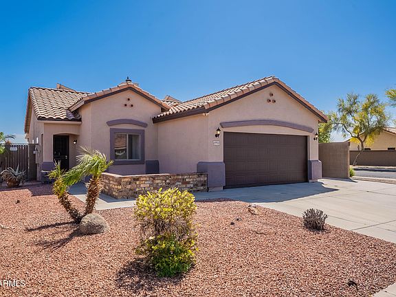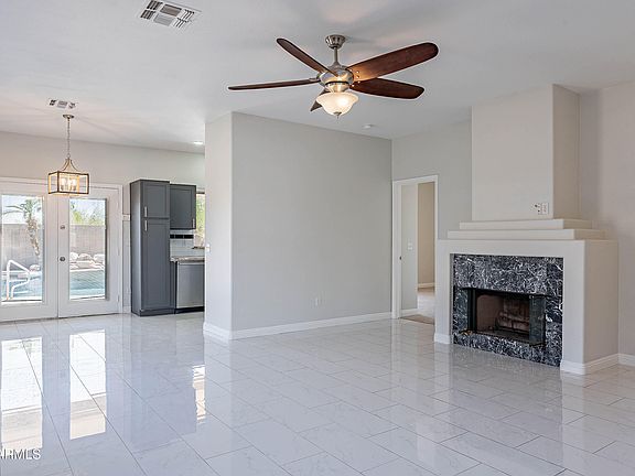 This stunning, move-in ready home boasts a pool and spa, located on a peaceful corner lot with no homes behind it, backing onto a greenbelt common area. The spacious great room features a cozy fireplace and a den conveniently located nearby. The interior is enhanced with porcelain tile flooring, upgraded lighting, custom paint, ceiling fans in every room, and double French doors with built-in blinds.