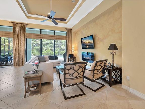 Beautifully maintained Stock Development home located in the gated community of Secoya Reserve. This residence offers 3 bedrooms, and 1,812 sq. ft. of living space on a private homesite. The open floor plan features a spacious great room, separate dining area, and a versatile bedroom/den/office. The kitchen is appointed with granite countertops, stainless steel appliances, and wood cabinetry. The primary suite includes 2 walk-in closets and en-suite bath with dual sinks and a walk-in shower. Additional highlights include tile flooring throughout (no carpet), a screened lanai with heated pool, and a 2-car garage. Secoya Reserve is a low-density neighborhood in North Naples located west of I-75, convenient to beaches, shopping, dining, and top-rated schools.