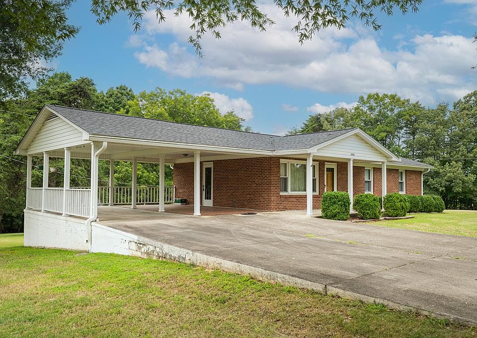 Secluded well-maintained brick ranch on peaceful 2+acres land! Wide open 2 car carport with private paved driveway brings you into an open kitchen / dining room. Hardwood flooring under carpet, master bedroom has large addition with current laundry room but could easily be made into a very nice walk-in closet and en-suite master bathroom! Roof only 7yrs old, replacement windows throughout, HVAC heat pump & AC 2020/2021! Downstairs 12x20 den / family room, man-cave with 1/2 bath and TONS of unfinished space with plenty of head clearance and inside / outside entrance. Now lets talk about the property - Covered front porch for peaceful enjoyment of private secluded 2 acres of cleared and level land with HUGE 2 car garage / workshop / storage outbuilding!
