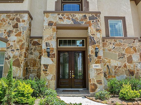 Step through the grand stone-and-stucco exterior into a bright, open living area perfect for entertaining. The chef's kitchen features stainless steel appliances, double ovens, granite counters, and an oversized pantry. The primary suite offers a peaceful retreat with a spa-inspired bath, whirlpool tub, walk-in shower, and dual closets. Upstairs, enjoy a versatile game room, study, or media room with pre-wired surround sound ideal for work or relaxation.