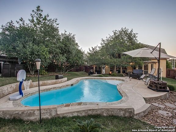 Luxurious .3-acre, corner lot beauty boasts a gorgeous oversized backyard, an Entertainers Dream! Heated Pool, large patio, fire pit & lots of trees. Family room has soaring ceilings, remote control blinds & floor-to-ceiling rock fireplace. First floor master w/generous walk-in-closets, jetted tub & backyard access. Spacious upstairs includes, private guest suite w/ bath & secluded large game room. Tons of upgrades, hardwood floors, circular drive, new Stainless steel appliances, double ovens & granite!