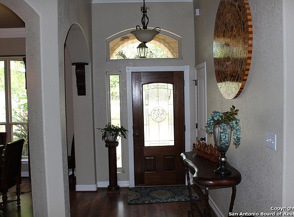 Beautiful Rivermont Home, corner lot with additional lot available $32,900. Majestic oaks, great floor plan, split bedrooms,large master, absolutely gorgeous cabinets through out. Formal dining, big windows with lots of natural light. Laminate & tile floors. Inside laundry 10 & 12 foot ceilings with crown molding. Country living close to the city with a really really awesome private river park, neighborhood pool and tennis courts and walking path. 24x12 storage building/workshop. You will not be disappointed! Smithson Valley ISD....doesn't get much better!