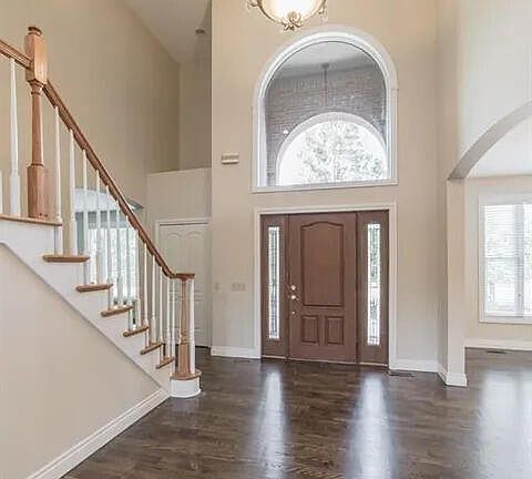 Stunning 4-bedroom, 5-bath brick home offering nearly 4,900 sq ft of exceptional craftsmanship plus a 3,000 sq ft walk-out basement. Situated in a prime area close to dining, shopping, parks, and everyday conveniences, this home blends luxury and comfort. The main level features a large kitchen with custom cabinets, granite counters, and a 48'' range that opens to a breakfast nook and a spacious living room with a natural gas see-through fireplace. Impressive arches connect the living room, kitchen, foyer, and huge dining room, while a large office provides excellent workspace and flexibility for everyday needs. The main-floor primary suite includes 11' ceilings, a jetted tub, shower, dual-sink vanity, and a massive his-and-hers closet. Upstairs are three oversized ensuite bedrooms plus a vaulted flex room ideal for an office or extra bedroom. The walk-out basement offers a bar, huge windows, and abundant entertainment space. Rental Available Now in a fantastic, convenient location.