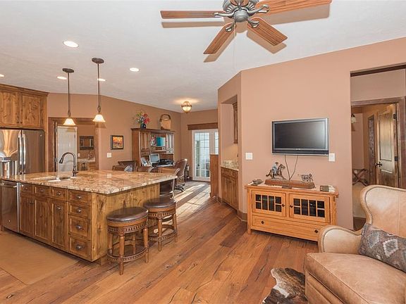 This home is comfortable elegance. It has had a complete face lift. The interior has been totally updated with some remodeling as well. High end finishes including beautiful granite, metal trim work, reclaimed wood, new flooring, paint, custom cabinets and built-ins, all new lighting and plumbing fixtures. Functional layout with the master on one side and guest bedrooms on the other. Large kitchen with desk area, wet bar and sitting area for enjoying morning coffee. Large pantry and laundry/mud room with cabinets and deep sink. Nice size den for office or family room complete with gas fireplace. Huge windows and vaulted ceiling in the living room with great views and lots of natural light. Generous master with access to a large covered patio. The exterior has new rock work, landscaping and continuous pipe rail fencing for your horses on 10 acres. Large shop with additional covered bays for parking or storage,plus RV hookup. The photos don't do this property justice, it is a must see!