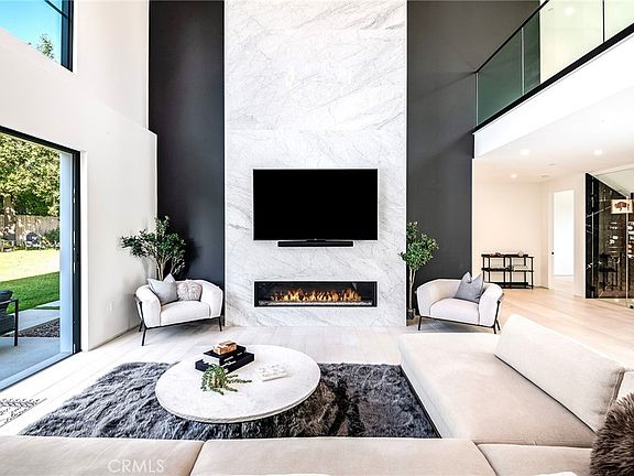 Newly completed in 2022, this sprawling Conejo Oaks estate is stunningly sophisticated and has every amenity today’s discerning buyer desires. The front door sets the tone as an oversized frosted glass swivel allowing light inside but privacy from those outside. Elegance and grandeur exude the minute you enter and experience the soaring 20-foot tongue and groove ceiling in the great room. Flooded with light and very open, the first floor also showcases the kitchen which is a culinary masterpiece including Wolf appliances, Carrara marble countertops, a luxurious backsplash and ample island seating for casual dining. A spacious walk-in pantry nearby offers ample storage, even accommodating a second refrigerator. Just around the corner is a formal dining room surrounded by large windows out to the picturesque front yard. On the other side of the kitchen, you can step through the large, commercial grade pocket doors into your personal sanctuary, a daily escape to a perpetual vacation. The covered lanai invites leisurely lounging, while the heated pebble sheen pool and jacuzzi promise tranquil relaxation. The spacious half-acre flat lot is a canvas for your dreams, perfect for recreation, cultivation, and exploration. Upon re-entering the residence, on this first level you'll also find a powder room and two bedrooms, each with its ensuite bathroom. Further exploration reveals two versatile rooms that can be used as offices, media room, home gym or game room. The separate, temperature controlled wine cellar is like a piece of art itself. At the top of the generous wood plank staircase, you'll discover a spacious primary suite in its private wing, with a well-lit catwalk offering gorgeous pool, mountain and tree top views. Additionally upstairs are two more bedrooms with ensuite bathrooms plus a large bonus room ready for your movie watching, game playing, or something up to your imagination. The spacious laundry room completes the top floor. Additional amenities include the oversized three-car garage, zoned AC, Google nest doorbells, Bluetooth garage doors, outdoor cameras, wired for sound and security and a concrete pad the size of a 1/2 court in front of home. This home is conveniently located near top CVUSD schools, scenic trails, fine dining, and upscale shopping. Equestrian enthusiasts will also delight in the proximity to the Conejo Creek Equestrian Park, horse trails, and nearby boarding facilities for all of your equestrian needs.