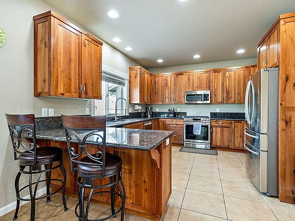 Gorgeous, custom built family home located on the South end of Talent, in a sought after neighborhood. Quality materials throughout including extensive tile flooring, custom Cherry cabinetry, slab granite countertops in the kitchen and bathrooms and stainless appliances. Versatile and functional floorplan features a light filled living room as well as a cozy family room with a gas fireplace. Open kitchen with informal nook, breakfast bar and adjacent formal dining room. All four bedrooms are oversized and located on the second level. Gorgeous master suite has a spacious walk in closet, beautifully tiled bathroom with dual vanities, corner soaking tub and a large tiled shower. There is incredible storage throughout the home and garage. Laundry sink, pantry storage and central vac. Lovely covered patios in the front and rear yards. Conveniently located dog run with access from the interior. Views of Grizzly Peak.