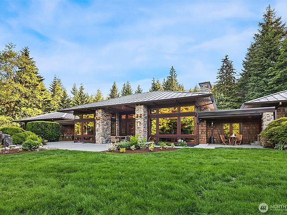 Award-winning 2002 MAME “Best Custom Home”, inspired by Frank Lloyd Wright’s iconic Falling Water, featuring PNW and Japanese influences. Stress melts with the sound of the waterfall. Enjoy feeding koi in a seasonal symphony of color landscaping. A temple awaits as you open the front doors with symmetrically balanced stone, wood, and glass. Awake with the sun and views of Mt Si, drift to sleep with the sounds of the water splashing. The primary spa awaits to nurture your tired body further. Take refuge in the cozy home theater with a 17’ wide screen and soundproof walls. Whether feeding 4 or 40, the U-shaped kitchen layout is perfect for orchestrating meals, including guests for conversation or prep, but keeping them out of your domain.
