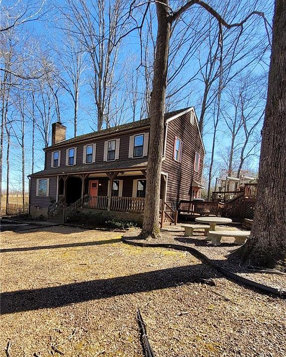 Lovely home on over 4 acres with an inground pool! Kitchen with shiplap, and half bath was completely renovated in 2019. Quartz counter tops and new appliances. Australian cypress wood flooring through almost all of downstairs. Enjoy a family movie room downstairs, perfect for a great family movie night. Large family room with wood burning brick fireplace. Adorable half bath renovated 2019. Private office also just off kitchen. Summer is just around the corner, you will love the inground pool (new liner 2019) with huge deck for entertaining. Bring your pets or your farm animals to this beautiful fenced in back yard. New plumbing 2019. Newer heat pump 2018. Home and pool are being sold as is. Inspections for information purposes only.
