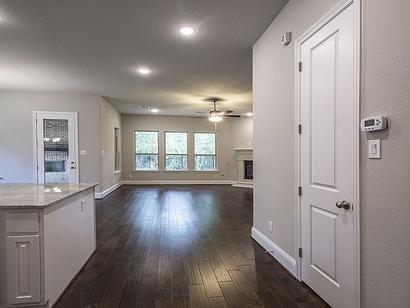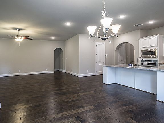 This home gorgeous 1 story home with its brick and stucco exterior and architectural design provides great curb appeal! Upon entering the foyer you are met with a spacious entry that transitions into an extended hall with high ceilings that flow past the Study with french doors into the kitchen. The large Kitchen island overlooks the Dining Area and Family Room with corner fireplace. The kitchen offers a gas cooktop with built-in oven and microwave. The spacious Master Suite features double vanities, custom cabinets and upgraded large walk-in shower. Located at the front of the home are Bedroom #2 and #3 that share a second bathroom. The extended wrap around covered patio offers the opportunity for crowd size entertaining and gatherings. Other upgrades include wood flooring throughout main living areas and upgraded carpet in the bedrooms. Indulge yourself with this beautiful home and lifestyle. MLS#79365725