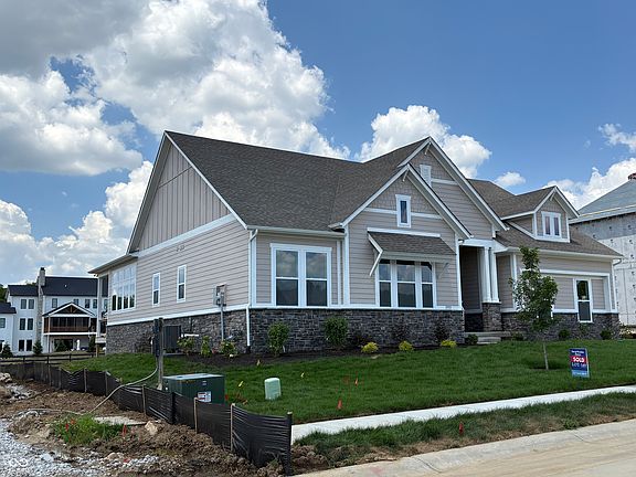 *Photos are of similar plan, actual home features may vary*. Discover this spacious ranch-style home at the Lakes at Grantham in Fishers. Boasting a minimum of 10' ceilings throughout the main floor, with a 12' section spanning the living and dining rooms, this 4,757 sq. ft. home offers an open and functional layout. Situated on a nearly half-acre homesite, it features 3 bedrooms and 4.5 bathrooms, including a Super Shower in the Owner's Bath and a shower in Bath #2. The family room includes a fireplace and a 16' sliding glass door, while the dining area features an 8' sliding glass door for easy indoor-outdoor living. The expansive rear covered porch and finished lookout basement provide additional space for entertaining or relaxing. A finished 3-car side-load garage completes this home, located off 113th Street in the Lakes at Grantham community.