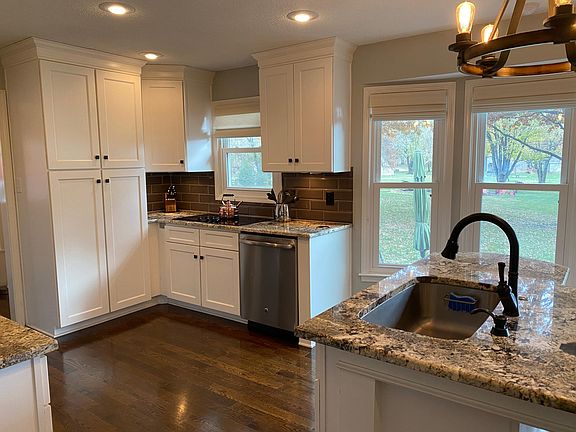 AVAILABLE NOW. Beautiful gem in Blue Valley Riding, next to Blue Valley High School, sitting on a 1.2 acre corner lot. Open space with beautiful trees providing lots of privacy. Main level and upstairs completely remodeled in 2016, basement remodeled in 2021. New carpet just installed. Primary bedroom on the main level. Granite countertops in kitchen and baths, stainless steel appliances with built-in beverage fridge, all new windows and doors. Hardwood floors throughout the entire 1st floor. Wood burning fireplace. First floor vaulted primary with walk-in closet, double vanity and two showers heads. Three generous bedrooms upstairs. Basement has a large finished rec room, two non-conforming bedrooms and/or office (for a total of 6 potential bedrooms) as well as a full bath, with plenty of unfinished storage space. Includes washer and dryer. Side entry two-car garage and a separate 3rd car garage/building for storage or man cave. Includes access to the neighborhood pool, tennis courts and pickle ball courts. Great for anyone looking for a serene setting and a wonderful home in the Blue Valley school district. Close to restaurants, shopping, grocery stores, and a short drive to 69 highway for easy access to the city. Tenant responsible for all utilities Last month's rent due at signing Security deposit required Pets are allowed for additional security deposit No smoking allowed inside premise Tenant will be responsible for lawn maintenance (lawn service can be provide for additional fees)
