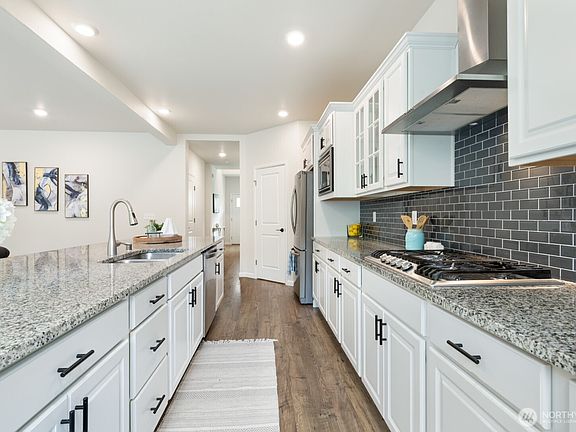 Welcome to this stunning home featuring an expansive open-concept layout—ideal for entertaining! Enjoy designer touches throughout, including modern flooring & a cozy gas fireplace with a tile surround. The gourmet kitchen boasts a massive island, granite counters, pantry, stylish tile backsplash, & premium stainless steel appliances. Upstairs offers a spacious family room, laundry, full guest bath, & three bedrooms, including a luxurious primary suite with a huge walk-in closet & spa-like bathroom. The top floor includes a large bonus room, 1 bedroom, & a 3/4 bath—perfect for guests or multi-generational living. All set in a prime location near shops, dining, top schools, parks, & Mill Creek Town Center. Welcome home!