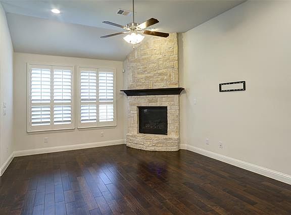 IMMACULATE 1-story Highland home in Prosper ISD with beautiful Park View. Engineered wood floors throughout an amazing open floor plan. Kitchen offers custom cabinetry upgraded Backsplash, built-in microwave, Gas Range and Over-sized Island, granite counter tops. Family room with stone, gas fireplace opens to kitchen, dining & bonus space with built-in bar area. Enjoy spacious media room. Master suite has spa-like bath with tub & rain showerhead, dual vanities & walk in closet. SO MANY UPGRADES-shutters, hardware & more! A Must See!