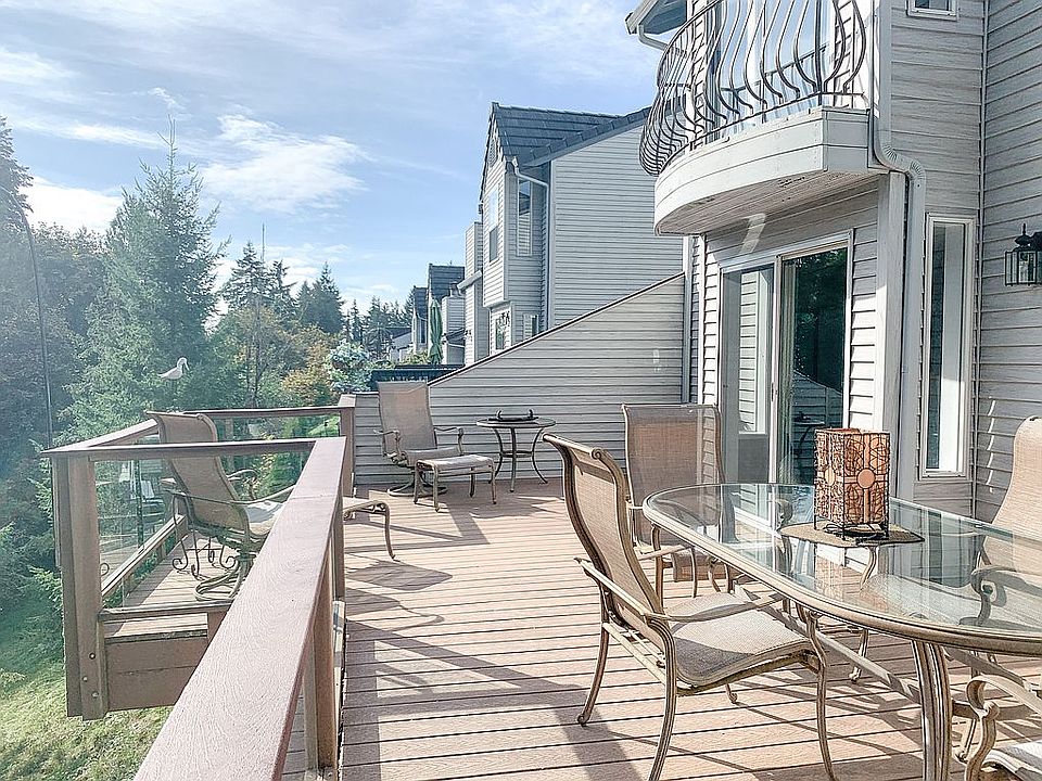 Beautifully updated large condo! Stunning exterior views that back up to the greenbelt. 1 Bedroom on the main floor, a 1/2 bath & laundry space. Remodeled kitchen with high end cabinets. Newer dishwasher and fridge. Livingroom, dining room & and deck finish off the main floor. Open stairway with landing leads to a large master room with a 5 piece on suite & walk in closet. Upper area also has a guest room with its own private bathroom. We journey to the lower level of the home & discover a spacious family room, & wet bar- large enough to let your imagination run w/possibilities. Private entrance from the lower deck along with an enclosed bonus room & another private bathroom & 2nd laundry hook up!