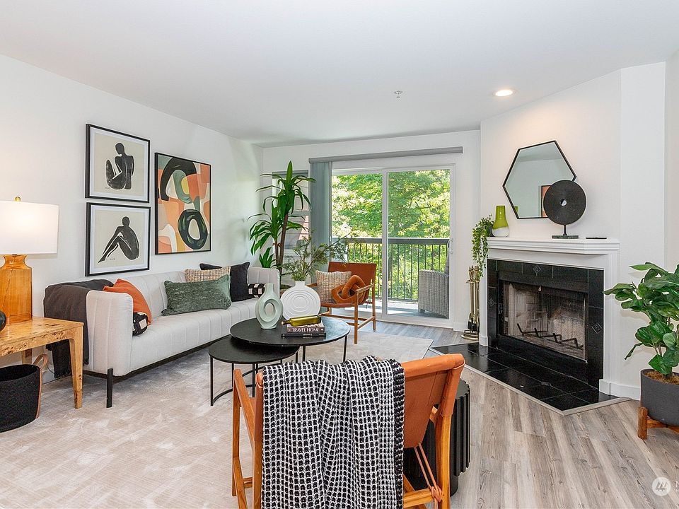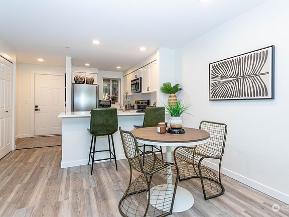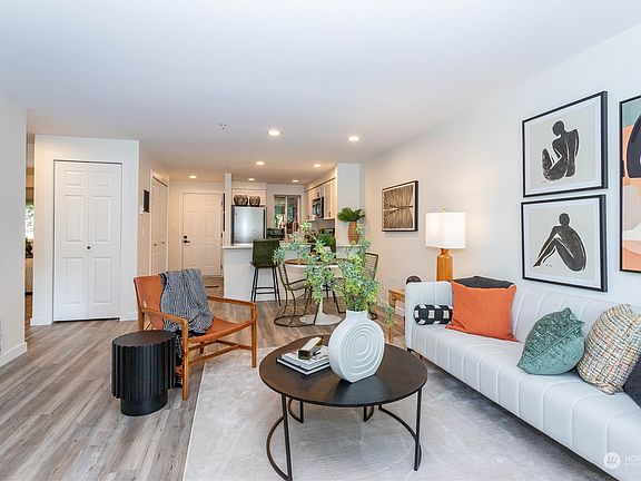 Discover modern living in this beautiful main-level unit with an open floor plan. The contemporary kitchen and bathroom remodels are stunning. Enjoy the spacious entertaining area with a balcony offering lush, green views. Includes a shared garage with storage and an assigned outdoor parking spot. Located in a desirable building near the entrance, clubhouse, sports court, and ample guest parking. Easy access to Hwy 405, UW, Microsoft, parks, and shopping. No rental cap. Pets welcome!