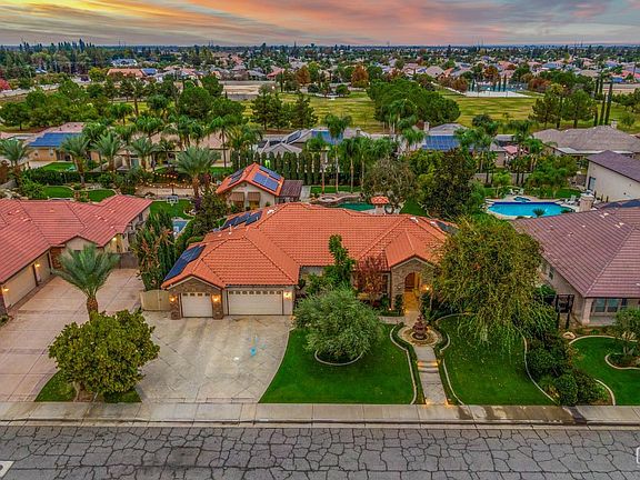 Welcome to this Silver Oaks single story almost 1/2 acre with owned solar and 1 br guest house minutes from shopping and the Westside Parkway! The main home offers 4 bedrooms, 3.5 baths, open formal living and dining rooms with wood-look tile floors that lead to the spacious family room with cozy fireplace and built-in cabinets. The chef's kitchen boasts a large center island, dual ovens, granite counters, and crisp white cabinetry perfect for cooking and entertaining. The private primary retreat features a remodeled bath with quartz counters, dual sinks, huge shower, and oversized walk-in closet. Secondary bedrooms include crown molding, walk-in closets and updated Jack-and-Jill bath with quartz counters. The separate guest house offers a living room, bedroom, bath, wet bar, and walk-in wine cellar perfect for extended family, private office, or man cave. The backyard is an entertainer's paradise with rock-faced pool and spa, fire pit, built-in BBQ, and space for kids to play.