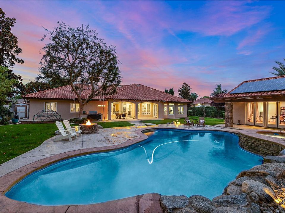 Rock-faced pool and spaCozy fireplaceWalk-in wine cellarLarge center islandPrivate primary retreatUpdated jack-and-jill bathSecondary bedrooms