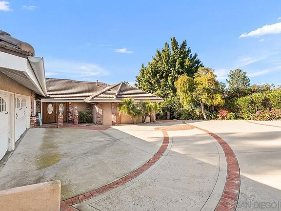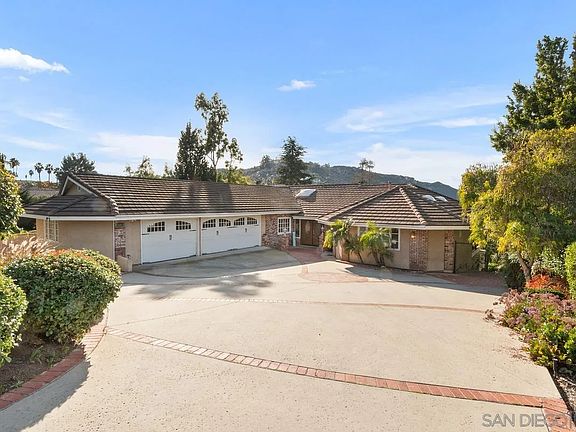 Don't let this rare opportunity to own a home in highly sought after Green Valley Highlands Poway, pass you by. This is a 4007sq ft 4BR, 3.5BA with an oversized three car garage with added storage space. It sits high on a hilltop with amazing views. The house is tucked into the hillside for added privacy. Take full advantage of the phenomenal half acre property with fun filled gatherings or relax on your spectacular wrap around deck and enjoy the breathtaking panoramic sunset views. You will be greeted by your custom driveway with inlayed brick that leads you up to your double door entry way. The lush landscaping with mature Queen Palms complement the idyllic neighborhood and you will be greeted by the smell of fresh paint. upon entering the house. Vaulted ceiling in the living room gives you an open airy feeling with French doors leading out to the deck and a large Bay window to capture the views. The double sky light in the kitchen floods the room with natural lighting. Ample cabinet space for all your needs and beautiful white Corian countertops for easy clean up. The kitchen provides room for multiple chefs to work together to create your holiday meals. Entertain your guest in the massive living room or outside overlooking the verdant landscape. An additional office space was added for the telecommuter or craft room. There are multiple fruit trees on the property to enjoy your own organic fruit. An absolutely unbeatable location within the award-winning Poway Unified School District, close to nature trails, Lake Poway, shopping, restaurants, hospitals, Rancho Bernardo