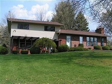 NEW PRICE......one owner immaculate split level on 3 1/2 acres! Offers storage galore, solid 6 panel cherry doors, living room with fireplace has gorgeous view. Eat in kitchen has been updated including ceramic floor. Dining room has built in cupboards with leaded glass. Three bedrooms have wood floors & extra deep closets. Hallway closet is cedar lined. Lower level has 4th bedroom & family room with Berber carpet & laundry room & 2nd bath added 2007. Basement offers 26x12 rec room w/wood burning fireplace. Furnace & hot water tank new in 2008 and NEW water softer 8/2010. 2+ car garage has workshop with updated electrical & gas heat. Call now to see this one first!