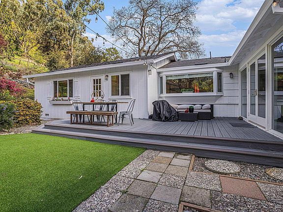 Lafayette boarder, Lafayette schools!! - Oozing with appeal! Charming ranch style home on .37 parcel just minutes from downtown Lafayette/WC. Set way back off the street with an extra long driveway to a carriage garage. The main house is west facing with an abundance of natural light filling the open concept floor plan. Enjoy a generous primary suite with newly remodeled and expanded walk-in dressing room and luxurious bath, newer roof, updated flooring, designer touches in the spacious kitchen, newer dual pane windows and walls of glass to help bring the outdoor beauty in! Professionally landscaped yard from the curb to the far rear fence, backing to open space. A spectacle of hundreds of drought resistant flowering plants firing off 12 months a year & a backdrop of sweeping hills of green, majestic oaks and wildflowers adding to the appeal of this serene setting. Plenty of areas to entertain inside and out. Crushed stone walkways, bocce court, artificial turf, string lights, all weather decking, retaining wall improvement and so much more! A commuters dream location w/ EZ access to HWY 24, 680, BART and the magic of downtown WC and Lafayette.