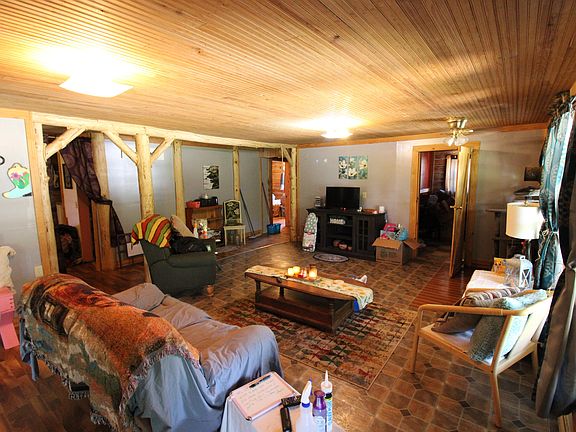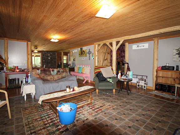 4 bed 2 bath tie constructed home on 9.4 mostly open acres with multiple outbuildings and 4 ponds. The home is approximately 2100 square feet with a nice sized living & dining room and a larger kitchen. 2 bedrooms and bathroom are on the main floor with 2 bedrooms and bathroom upstairs. There are covered decks on 3 sides of the home. The home has central heat & air. The heat sources are an outdoor wood furnace, propane furnace and ventless propane heaters for backup. Outbuildings include an 8x16 garden shed, a 20x30 shop with concrete floor and power, 24x24 livestock shelter as well as another smaller livestock shelter. Only 3 miles to town off of a state highway but yet secluded and peaceful.