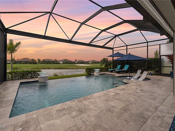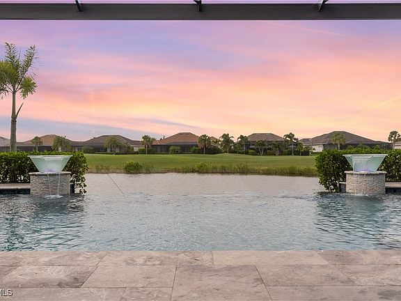 Welcome to one of the most breathtaking GOLF DEEDED homes with a CUSTOM heated saltwater infinity-edge pool and cascading water that blends seamlessly into the serene lake, showcasing an unobstructed lake & golf view on the 12th hole with NO CART PATH behind the property, ensuring serene privacy and postcard-perfect sunsets every evening. THIS HOME HAS $225,000 in custom upgrades, this residence blends refined interior selections, standout architectural features, and an extraordinary resort-style outdoor living experience that truly sets it apart from ANYTHING ELSE ON THE MARKET. Designed for those who crave LUXURY outdoor living, the expansive west-facing pool retreat was expertly crafted to highlight mesmerizing water and golf views while capturing every glowing sunset over the pond.
