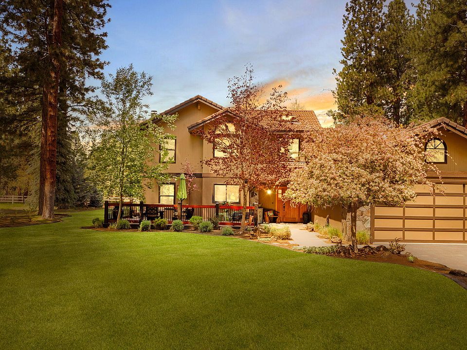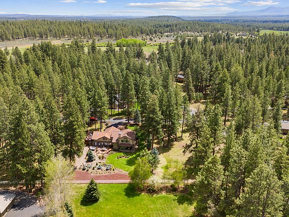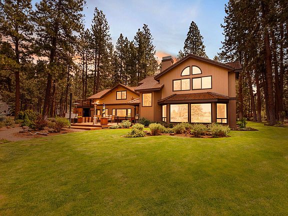 Fantastic park-like corner lot in Sage Meadow with big views of meadow from home & multiple outdoor living spaces. Interior features: Spacious two-level home with good separation between primary bedroom, other bedrooms & ''apartment''; Hardwood flooring throughout main living area; Large kitchen with pantry, granite counters, newer stainless appliances; Floor to ceiling stacked rock fireplace; Great meadow views from living room; Fully remodeled downstairs bathroom with walk-in tile shower; Huge ''apartment'' with family room (wet bar), full bath, sleeping area, private upper deck access; Large primary bedroom with abundant natural light, walk-in closet & shower, huge jetted tub, rock fireplace. Exterior features: Multiple outdoor living areas (large front/back/upper decks) and Hot tub; Large water feature with the meadow as backdrop; Epoxy floor in garage, newer hot water heater, storage/shop adjoining garage; Lifetime tile roof; Deschutes National Forest access across the street