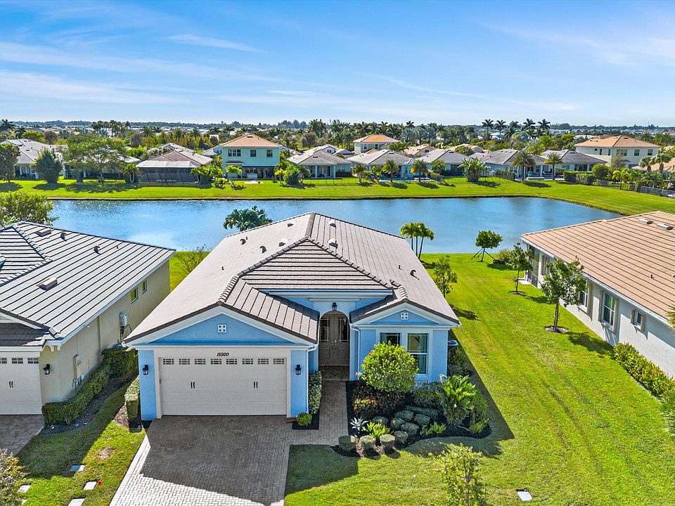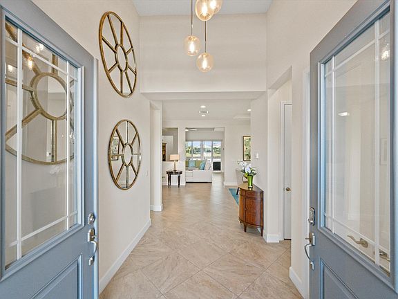 Welcome to this beautifully maintained home in The Hammocks of Westlake, offering comfort, style, and peaceful lakefront living. The property features impact windows, a freshly sealed driveway, beautifully landscaped surroundings, and a bright, inviting interior. A side easement provides additional space between this home and the neighbor, offering extra privacy and a more open feel.Through the double-door entry, you'll find an open floor plan with upgraded tile throughout, plantation shutters, and high-hat lighting. A versatile den with glass doors serves perfectly as a home office, guest room, or flex space to suit your needs.The modern kitchen includes soft-close cabinetry, quartz countertops, a mitered-edge island, and a walk-in pantry, opening seamlessly to the spacious family room and dining areaideal for everyday living and entertaining.