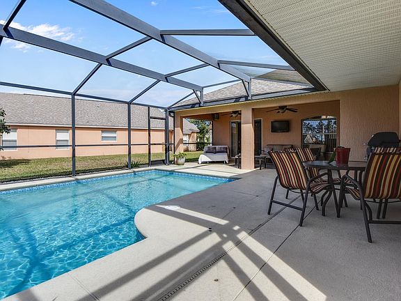 Perfect for entertaining while enjoying outdoor living on your beautiful lanai and screened in pool! This fabulous 4 bedroom 3 bath home boasts an open floor plan and volume ceilings. Upon entering you will be greeted by a formal dining as well as a formal living space. Moving along to the Kitchen and family room where natural light abounds, the custom tile work and interior paint will be sure to please. This home has been well maintained and loved by the original owners and has never been used as a short term rental. Whether you choose a full time residence, investment opportunity or a vacation home you can not go wrong! Furnishings are negotiable. Call for your private showing.