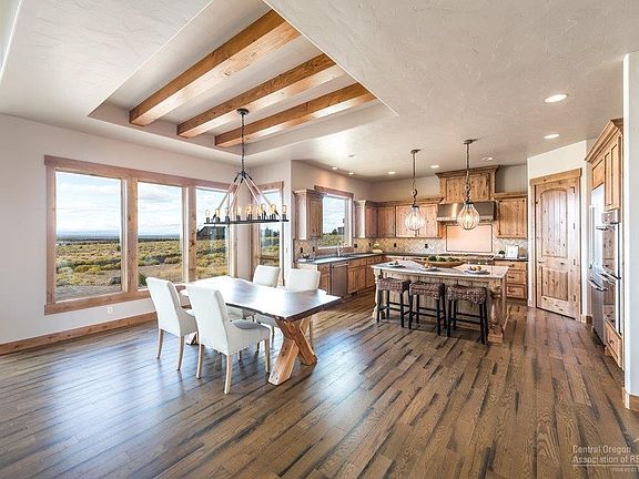 Gorgeous Country Home with Stone and Timber Accents on almost an Acre with Beautiful Cascade Mountain Views off the Back of the Large Paver Patio with Fire Pit, Vaulted Ceilings with Extensive Beam Work and a Stone Fireplace with Large Stone Hearth, Wood Floors Throughout Great Room, Dining and Kitchen, Slab Granite Island and Granite Countertops in Kitchen, Red Oak Cabinetry, Granite Counters and Tiled Showers in Baths, Master has Free Standing Tub, Tiled Utility Room, Tall Ceilings and Triple Car Garage.