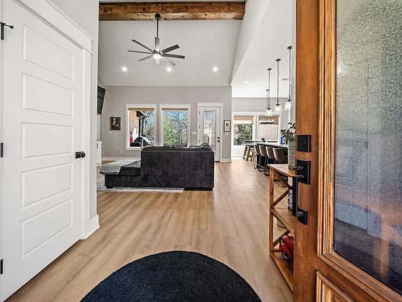 Welcome to this exquisite 1-story home nestled in a quiet, private cul-de-sac just outside the Hideaway community, with easy access to I-20 and Toll 49. This beautifully designed home offers 4 spacious bedrooms and 2.5 bathrooms, featuring high-end finishes and custom details throughout. Upon entry, you’ll be greeted by vaulted ceilings and sleek black matte fixtures, creating a contemporary yet inviting atmosphere. The open-concept living space seamlessly connects to the kitchen, which is a true chef’s delight. Enjoy cooking on your gas cooktop and quartz countertops, surrounded by stainless steel appliances, custom soft-close cabinetry, and a huge hidden pantry for all your storage needs. Relax in the large living room with a cozy fireplace, perfect for unwinding after a long day. The large primary retreat offers a private sanctuary with double sinks, a walk-in closet, and an oversized shower, plus a soaking tub offering both style and function. For added convenience, the laundry room is equipped with built-in cabinets and directly connects to the master closet, making laundry day a breeze. Step outside onto your covered patio that out looks the turf area and low-maintenance landscaping. The patio is also pre-plumbed for an outdoor kitchen, making it an ideal space for entertaining. Enjoy peaceful views of the surrounding piney woods from your inside and outside. The 16x30 carport can store all your outdoor toys, boat, trailer or cars! The oversized 2-car garage is perfect for your vehicles and storage needs, featuring a storage closet and epoxy floors for durability and easy maintenance. This property is fully fenced with pipe fencing and ready for you to call home. Electrical panel is ready for power outages with a whole house generator plug. Don’t miss out on this rare gem that combines comfort, privacy, and easy access to all the best amenities and located in the award winning LISD.