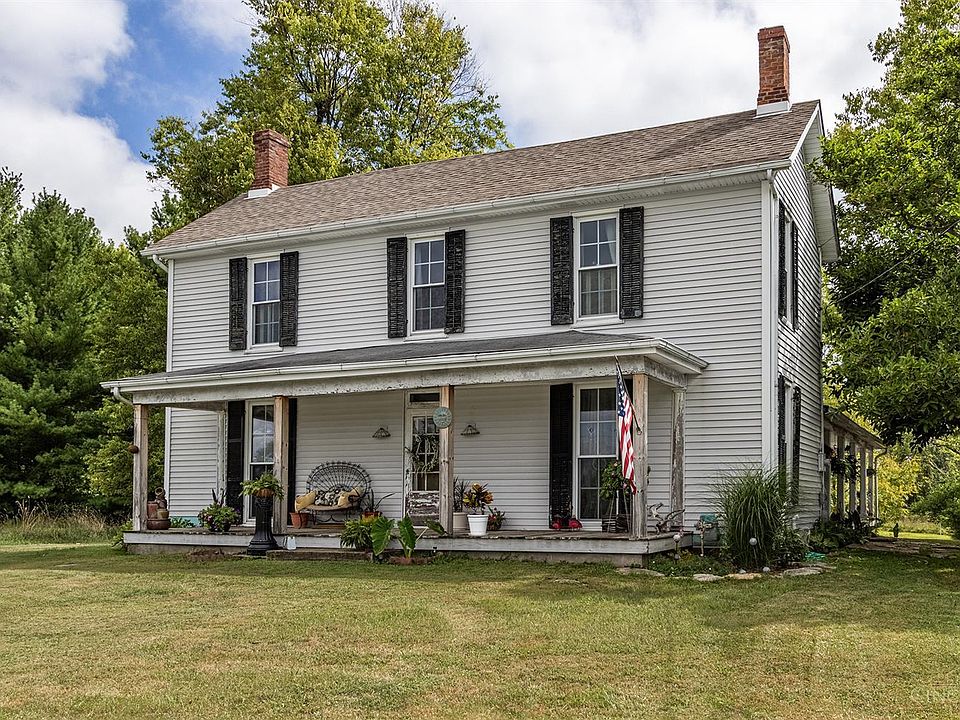 Great Potential in this peaceful Farm House estate on 8.8 acres w/ fully stocked pond, Barn, Tool Shed and Chicken Coop. This home boasts 9 Large rooms, 4 Bedrooms. with 1st Floor Primary Bedroom & adjoined ensuite. Eat in Kit w/ Large Formal Dining Room. So serene, Kick back on the wrap around porch and take in the tranquility. 1st floor laundry w/ Bonus large. Broom closet. Basement access off Kitchen, land is gentle to rolling acres, woods, pasture. Be a Farmer or Developer. Property backs up to 2 great subdivisions. Prop. sold as is.