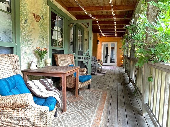 Rarely available detached, artistic and charming partially furnished guesthouse available. Located on 1.6-acre gated resort-like property on quiet street in SW Rancho Santa Fe Covenant. Adjacent to hiking trails, beaches, shopping and freeways. Approximately 600 square feet of living space, with an additional ~350 sq ft of covered deck. Spanish tile floors, open beam wood ceilings, wood burning fireplace, vintage bathroom, abundant windows and skylights throughout for light and garden views, and French doors which open onto patios, perfect for alfresco dining and morning coffee. Kitchen includes gas oven and cooktop, microwave convection oven, filtered water and refrigerator. Ample storage available. The guesthouse is on a property shared by the main house and two wonderfully different cottages but is completely separate and private. This is a unique opportunity to share all the property has to offer, including two very friendly rescue horses, community vegetable garden, pool, jacuzzi, dry sauna, patios, mature garden spaces and the 450 square foot fully equipped gym. We are looking for light footprint, respectful, quality, professional tenants who will treat the property as their own (clean residents a must), and who are interested in being part of a "community" while maintaining their privacy. People who enjoy the peace and serenity which Rancho Santa Fe has to offer are best fits. Pet considered upon discussion, and horse corral with barn open for consideration. No smokers of any kind, no drugs, no loud parties. As required first step please tell us a bit about yourself and what you are looking for. Applicants not providing this background information will not be considered. References, background and credit check required. Month-to-month or short-term lease to start, long term potential if right fit for all. Rent is inclusive of respectful use of all utilities (water, gas, electric, internet, trash, cable TV, pool service, gardener, laundry). Uncovered parking for 2 cars. Currently occupied until late January, show to qualified applicants by appointment only. Furnishings are not accurate as some belong to current tenants.