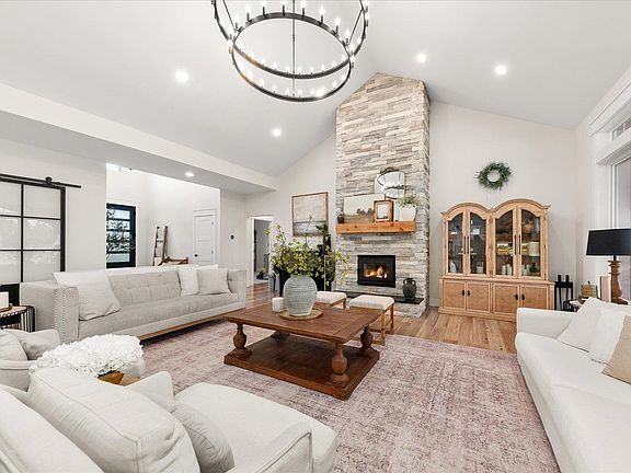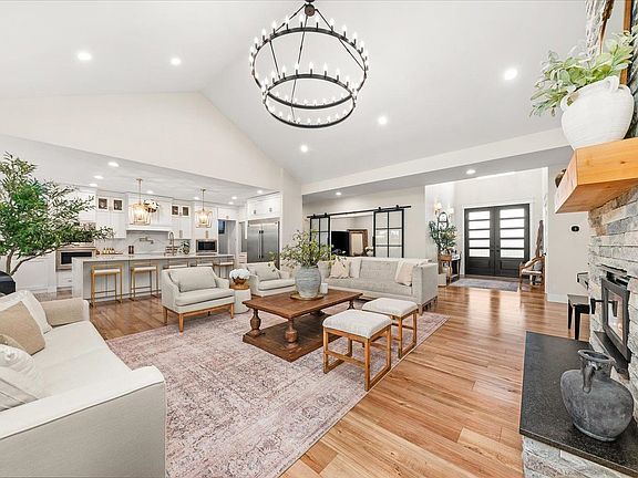 Discover timeless elegance in this stunning 5-bedroom, 3.5-bath French country-inspired rancher set on 10 level and private acres. This beautifully designed home features a bright and open floor plan, centered around a magnificent kitchen with quartz countertops, a huge island, walk in pantry, and a custom coffee bar. The luxurious primary suite offers a spa-like bath and a generous walk-in closet. The main floor has three additional bedrooms and offers plenty of space for family and guests. Enjoy additional living space upstairs including a bonus room with a kitchenette, full bathroom, and a 5th bedroom, creating a space that's perfect for a guest suite or multigenerational living. Relax and unwind on the expansive covered patio where you can treat yourself to spectacular sunset views as you take in the sights and sounds of the beautiful landscape.