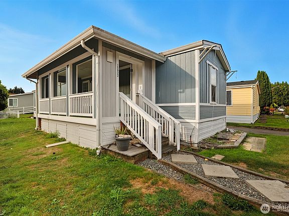Welcome to Summerville Estates — an all-age community in the heart of Sumner! This well-maintained home offers 2 bedrooms, 2 bathrooms, plus 2 versatile bonus rooms ideal for an office, hobby space, or rec room. The spacious kitchen extends into the dining area and features abundant cabinet storage and counter space. The large primary suite includes a private bathroom with a soaking tub for relaxation. Enjoy easy-care laminate flooring throughout, a paved parking area alongside the home, and a convenient location close to Hwy 410 & 167, the Sumner train station, grocery stores, and local shopping. Affordable living with great access to everything Sumner has to offer!